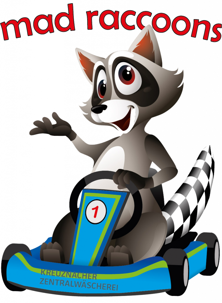 Wo kommt der Name „Mad Raccoons“ eigentlich her? Ursprünglich stammt unser Waschbär von einem unserer Sponsoren, der Kreuznacher Zentralwäscherei GmbH & Co. Mietwäsche KG. Ein Kumpel hat unseren „Willi“ dann sozusagen ins Kart gesetzt und schon war unser „Mad Raccoon“ geboren.